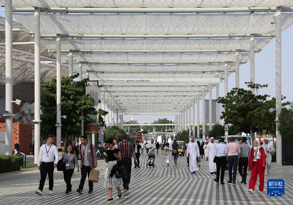 12月3日,人們在聯合國氣候變化迪拜大會“綠區”參觀。