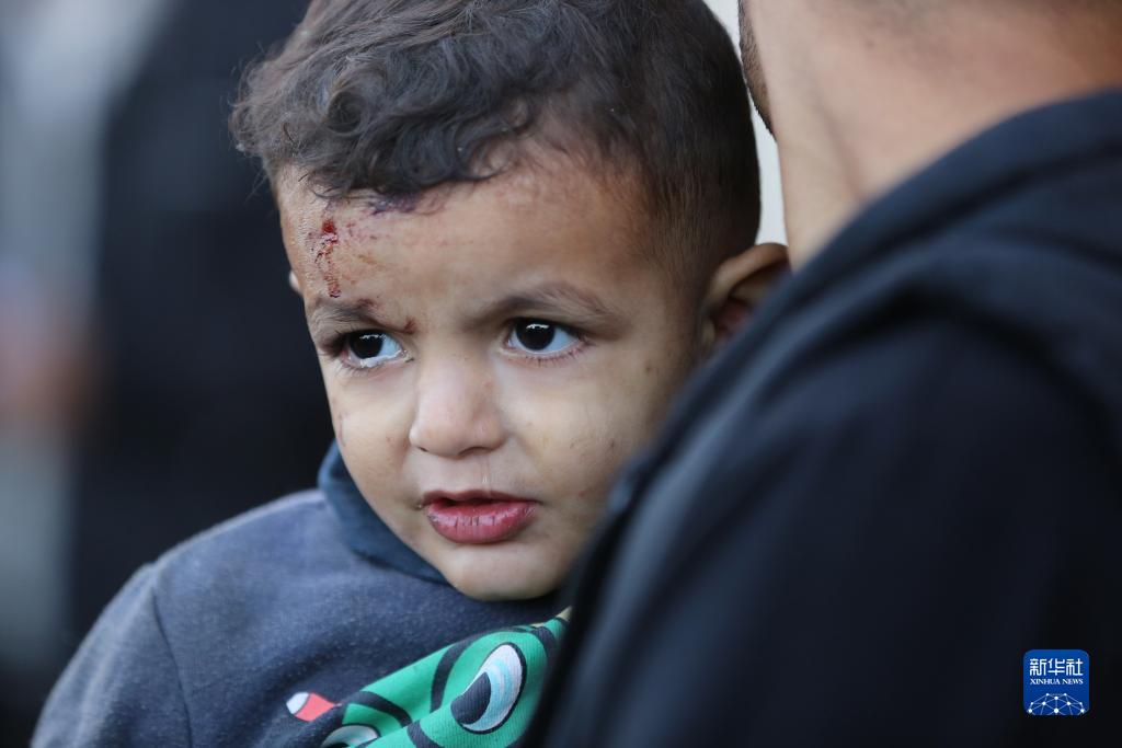 這是12月3日在加沙地帶代爾拜拉赫一家醫院拍攝的一名受傷的巴勒斯坦兒童。