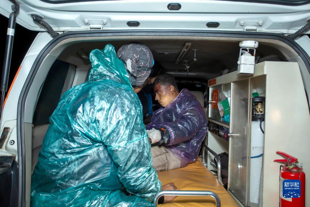 12月4日,搜救人員在印度尼西亞西蘇門答臘省轉移傷者。