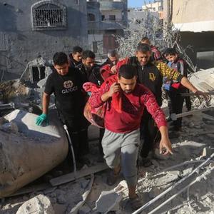 12月3日,在加沙地帶南部城市拉法,人們在以軍襲擊后開展救援。