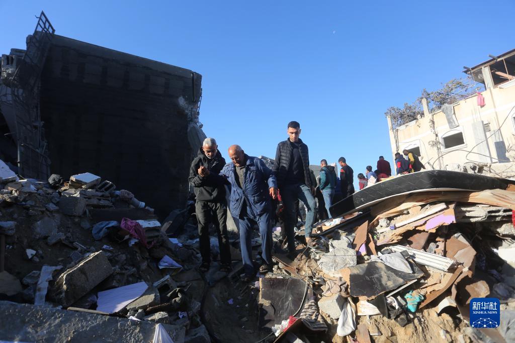 12月3日,在加沙地帶南部城市拉法,人們在以軍襲擊后開展救援。