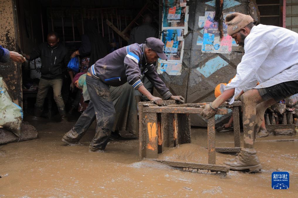 12月3日,在坦桑尼亞馬尼亞拉地區,當地居民在暴雨后從屋子里搬出受損物品。