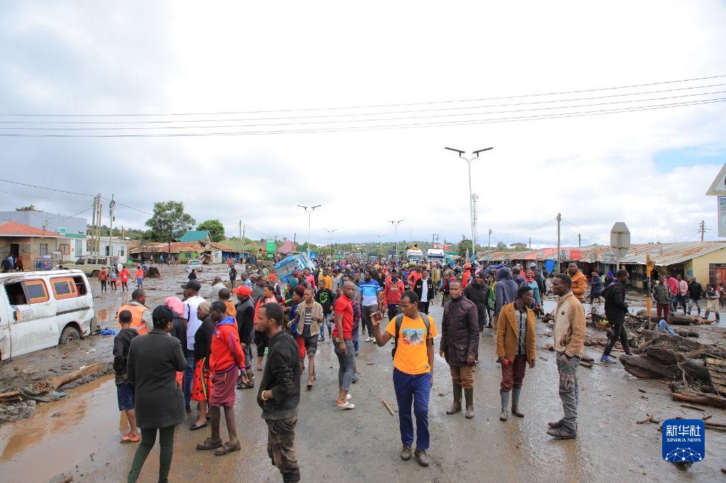 12月3日,在坦桑尼亞馬尼亞拉地區,當地居民在暴雨后聚集在街上。