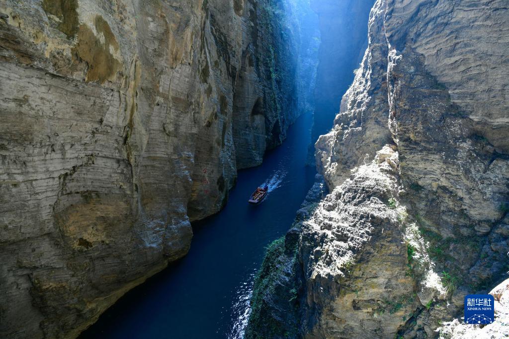 12月4日,游客在鶴峰縣容美鎮屏山峽谷乘船觀光。