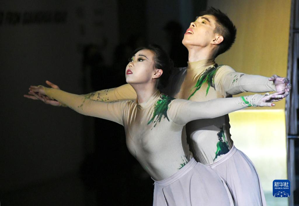 12月4日,在清華大學藝術博物館,來自清華大學的學生表演群舞《生命的野望》。