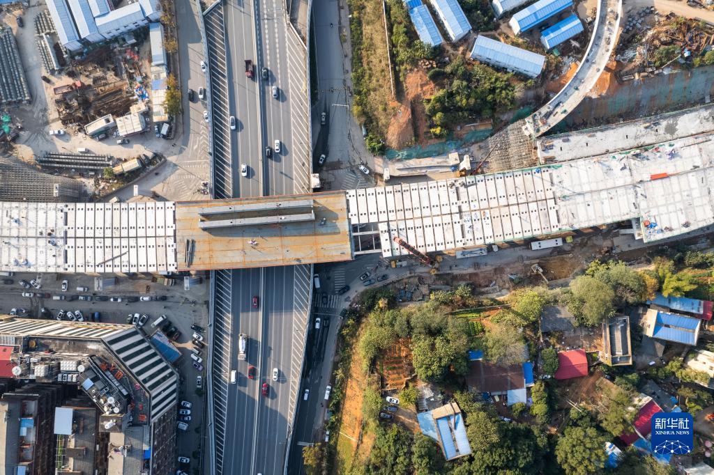這是12月4日拍攝的長沙萬家麗路快速化改造北延線工程施工現場(無人機照片)。