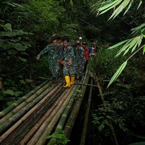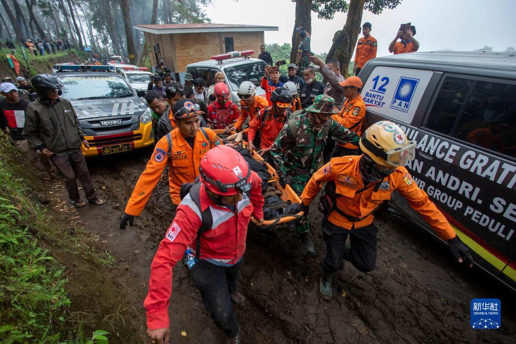 12月4日,在印度尼西亞西蘇門答臘省的馬拉皮火山附近,搜救人員轉移傷者。