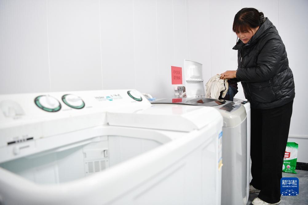 志愿者在神林鄉楊野河村新時代文明實踐站愛心洗衣房為老人免費洗衣服(11月30日攝)。