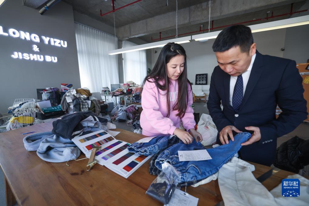 12月5日,在位于織里鎮的阿龍衣族服飾有限公司內,設計人員在討論童裝款式。該企業于2019年全國首創童裝+百貨模式,打造七秒易購新零售品牌,目前全國有120家門店,年銷售額達1.2億。