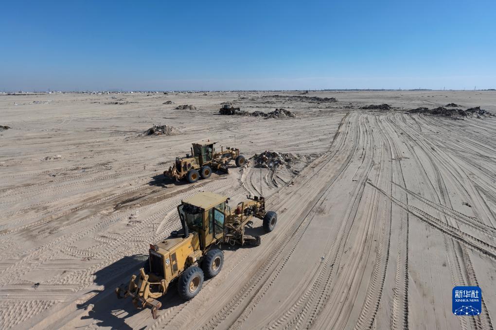 這是12月4日在科威特杰赫拉省拍攝的南薩阿德阿卜杜拉新城基礎設施項目施工現場(無人機照片)。