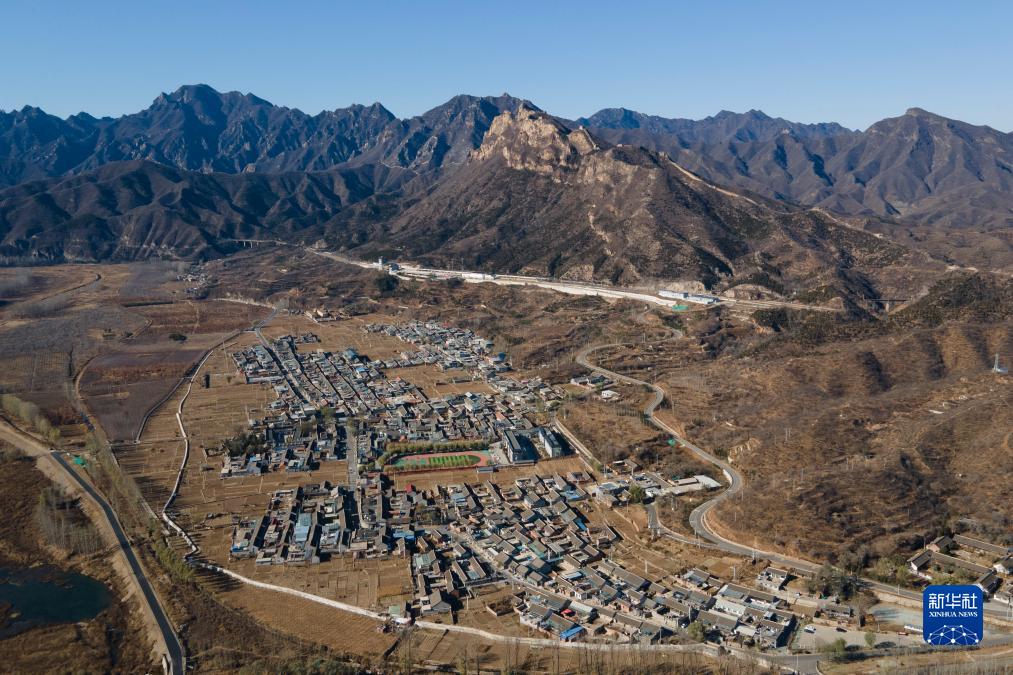 這是古北口長城臥虎山段腳下的古北口鎮河西村,它被評為了“中國傳統村落”(無人機照片,11月14日攝)。