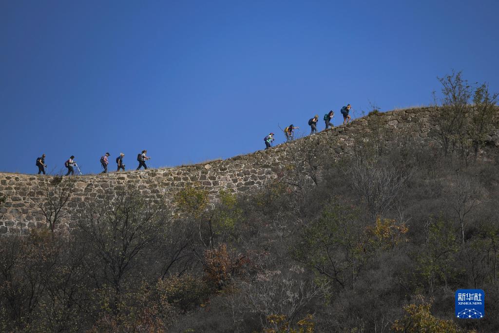 外國游客在古北口長城蟠龍山段游覽(10月24日攝)。