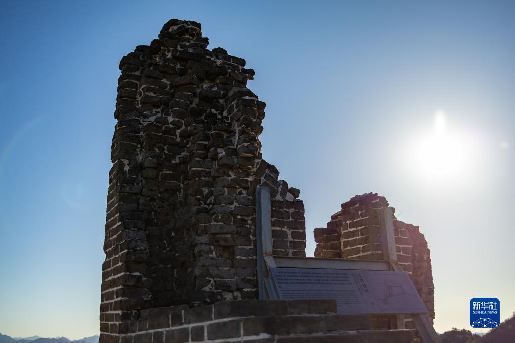 古北口長城蟠龍山段密云306號敵臺(11月14日攝)。古北口長城保留長城殘狀的同時,對部分墻體進行加固,并通過長城文化標識解說牌等向游人展示修復過程及設計理念。