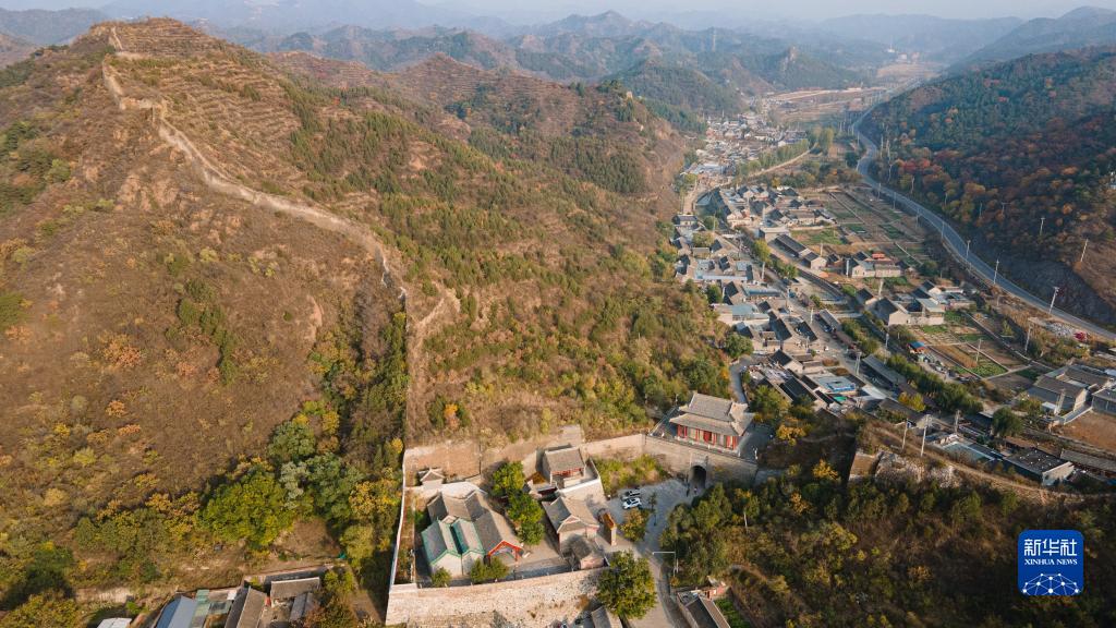 這是古北口鎮古北口村北門,古北口村被評為了“中國傳統村落”(無人機照片,10月23日攝)。