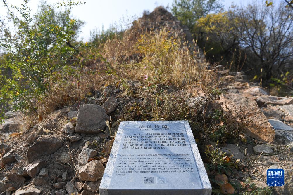 古北口長城蟠龍山段上的長城文化標識解說牌(10月23日攝)。