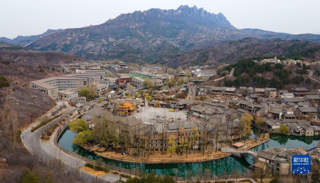 位于古北口長城司馬臺段腳下的古北水鎮景區(無人機照片,11月15日攝)。