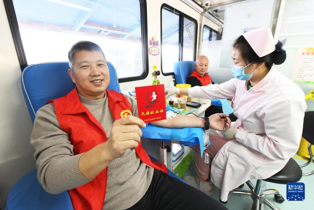 12月5日,在河北石家莊新樂市新興路獻血屋內,志愿者無償獻血。