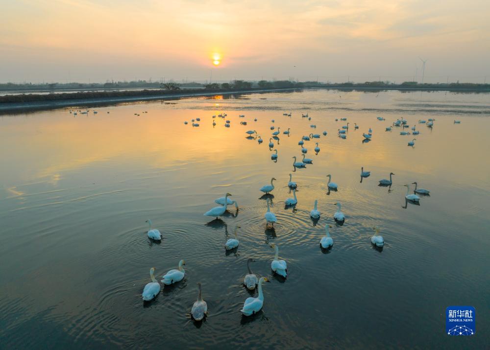 12月5日,候鳥棲息在江蘇省興化市里下河國家濕地公園內(無人機照片)。