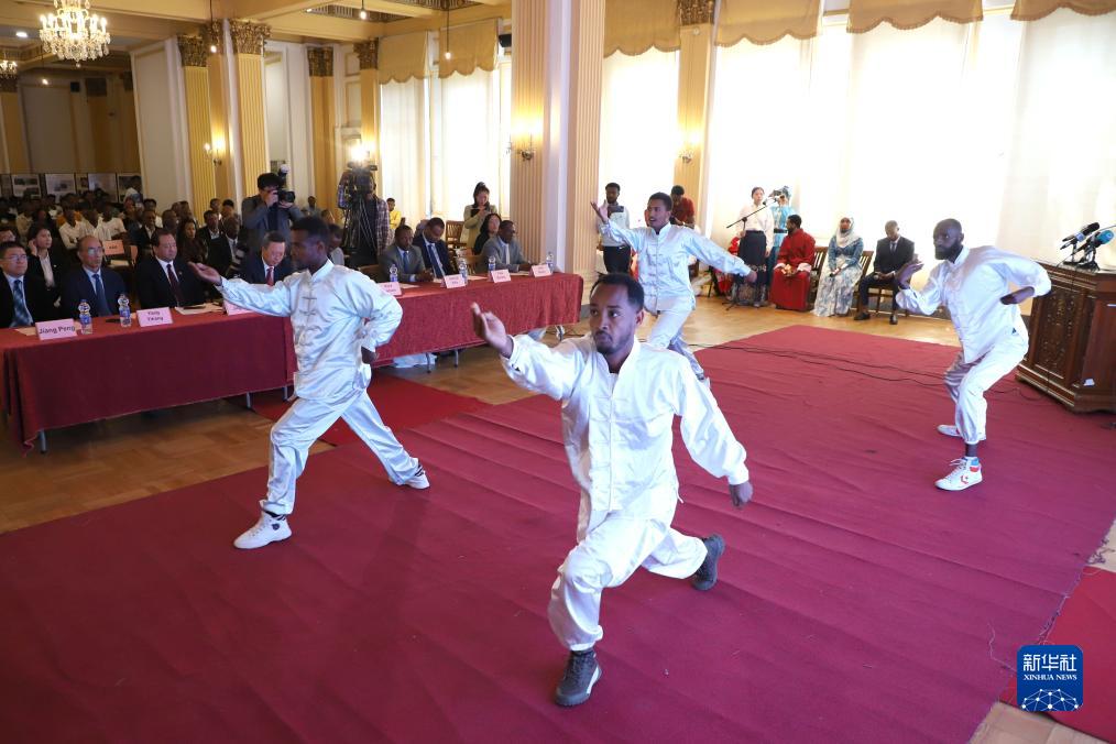 12月4日,在埃塞俄比亞首都亞的斯亞貝巴,亞的斯亞貝巴大學孔子學院學生表演中國功夫。