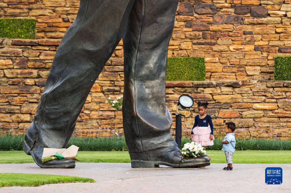 12月5日,在南非比勒陀利亞,兒童走近一座曼德拉銅像。