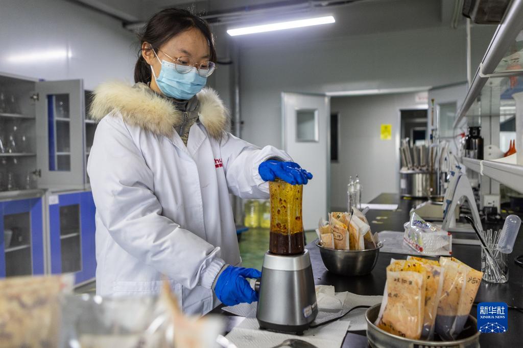12月5日,在重慶市合川區的重慶聚慧檢驗檢測有限公司,檢測員在理化實驗室進行火鍋底料樣品制備。