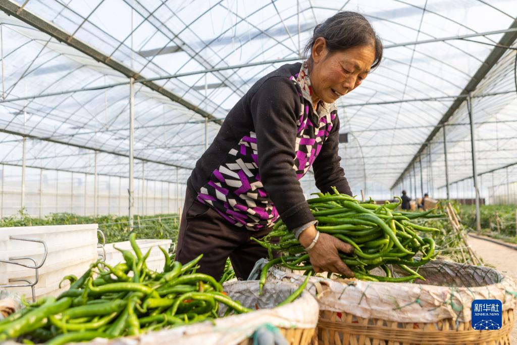 12月5日,在重慶市合川區太和鎮,村民在一個蔬菜種植基地整理采收的二荊條辣椒。