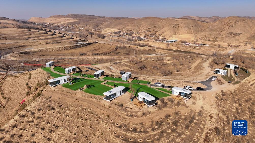 西吉縣新營鄉甘井村旅游示范點新建成的“太空艙營地”(12月1日攝,無人機照片)。