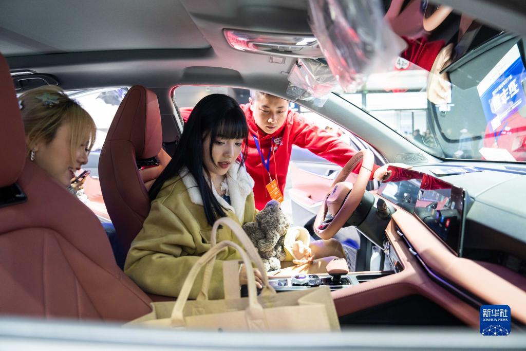 12月6日,在長沙國際會展中心,觀眾(中)在了解展車功能。