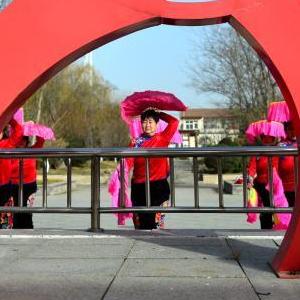 12月6日,肥鄉區田寨村村民在文化廣場上跳廣場舞。