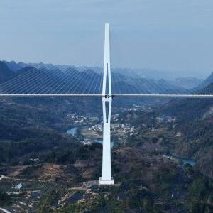初冬時節,在貴州省黔南布依族苗族自治州平塘縣,高山峽谷之間的平塘特大橋巍然屹立,自然風光與大橋雄姿吸引了眾多游客。近年來,平塘縣依托平塘特大橋推進“橋旅”融合發展,著力打造集橋梁博物館、天文科普館、懸崖酒店等于一體的綜合旅游景點。