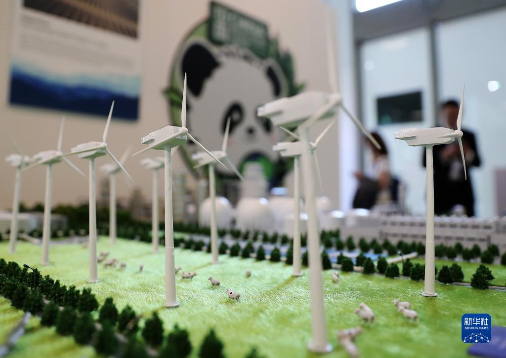 這是12月6日在聯合國氣候變化迪拜大會中國角拍攝的風力發電設備模型。