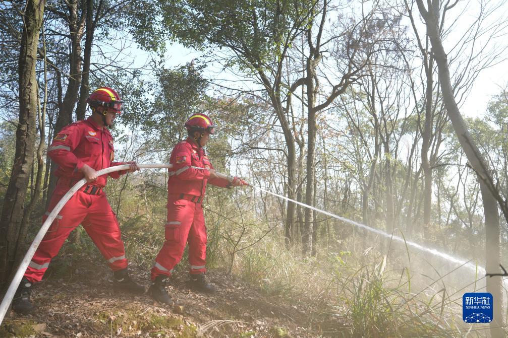 12月7日,在長沙岳麓山風景名勝區桃花嶺景區,森林消防員在進行滅火演練。