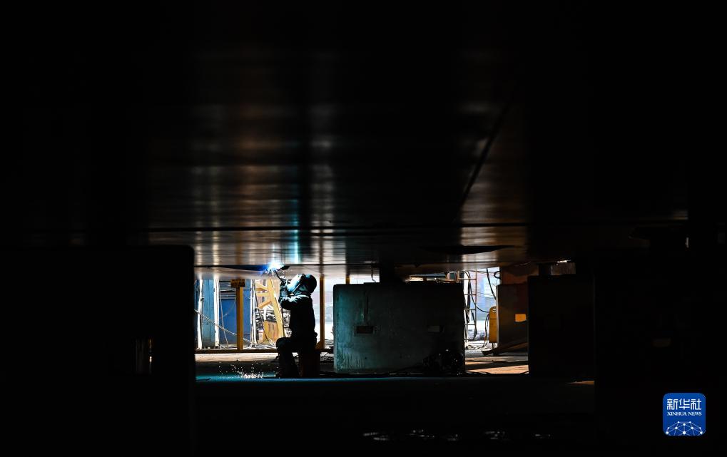 12月5日,在位于江蘇省泰興市的江蘇揚子鑫福造船有限公司,工人在廠區作業。