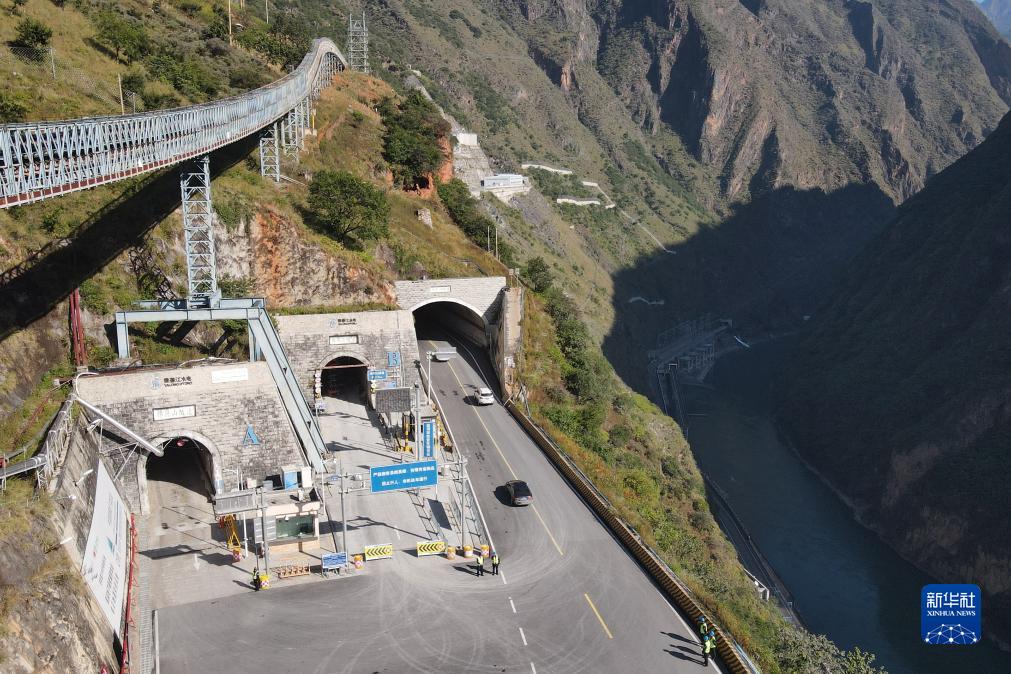 這是雅礱江畔,中國錦屏地下實驗室所在的錦屏山隧道口(11月8日攝,無人機照片)。