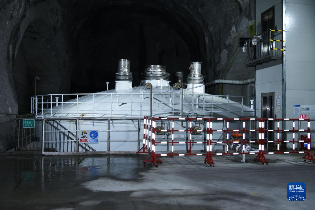 位于中國錦屏地下實驗室(CJPL)二期的中國暗物質實驗CDEX-1T大型液氮恒溫器(2020年攝,資料照片)。