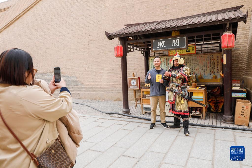 光頭絡腮胡的李森身披甲胄,在景區內扮演明朝嘉峪關最高軍事長官,為游客簽發文創產品“關照”(通關文牒)。自2001年起,他在嘉峪關“守關”20多年,親眼見證了嘉峪關旅游業的發展變化。