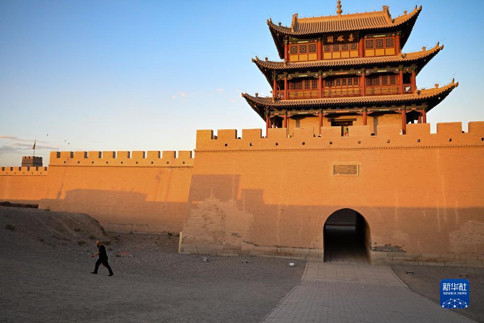 7月14日,結束一天的工作,李森走出甘肅嘉峪關關城景區。