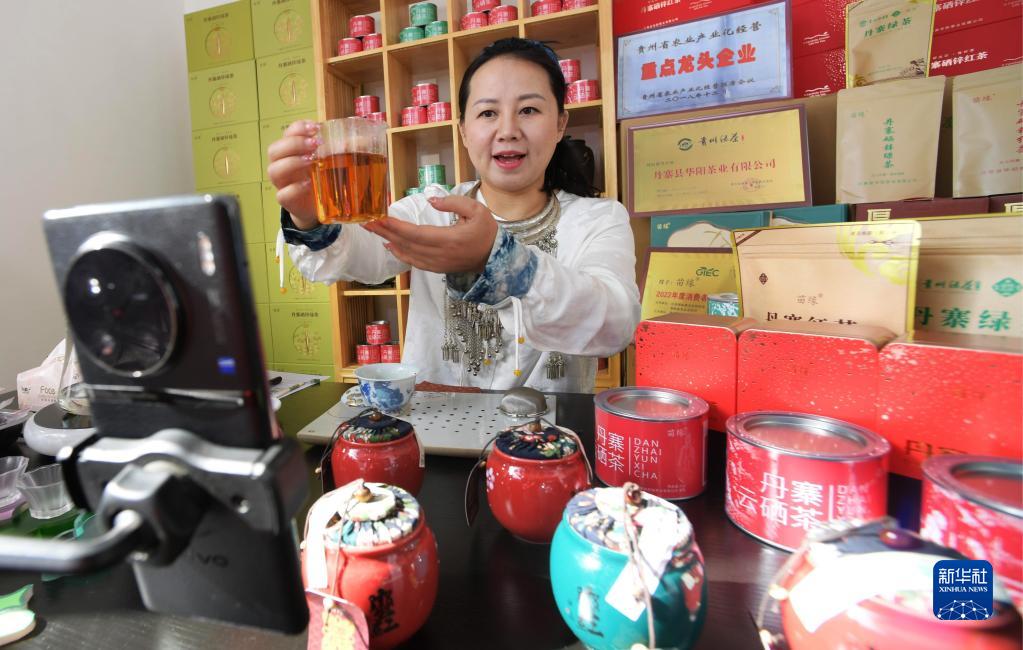 12月7日,工作人員在貴州省黔東南苗族侗族自治州丹寨縣一家茶企的電商直播間推介紅茶。