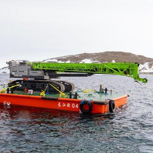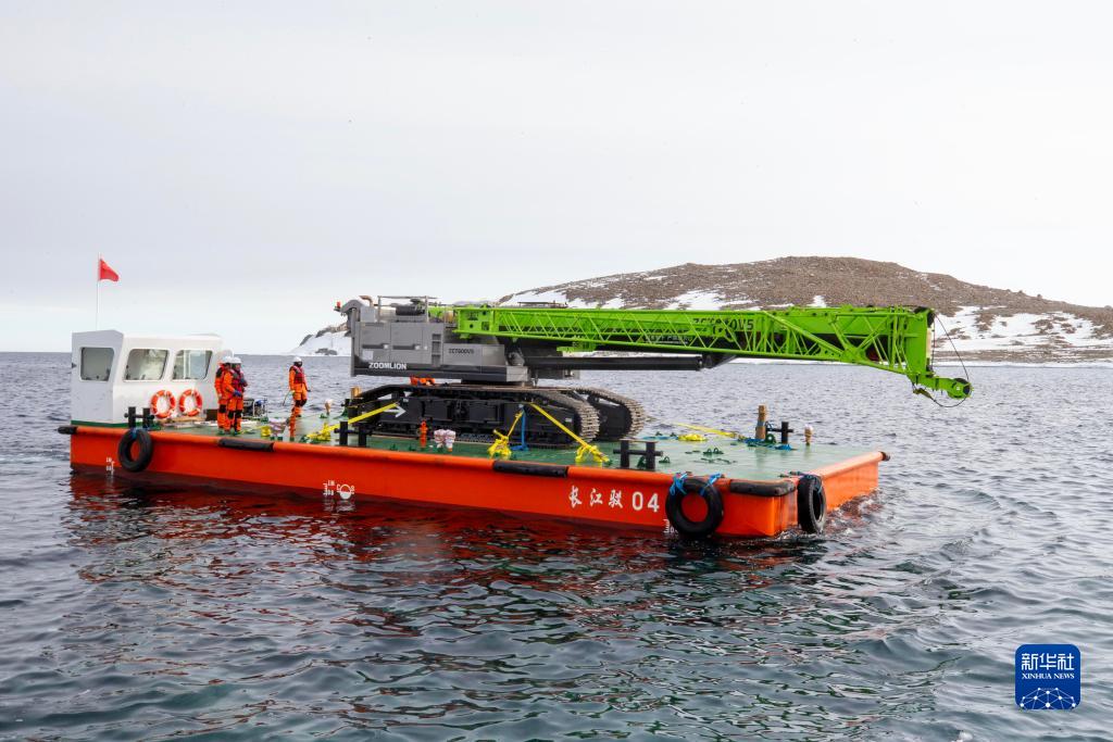 12月7日,中國第40次南極考察隊開展卸貨作業。