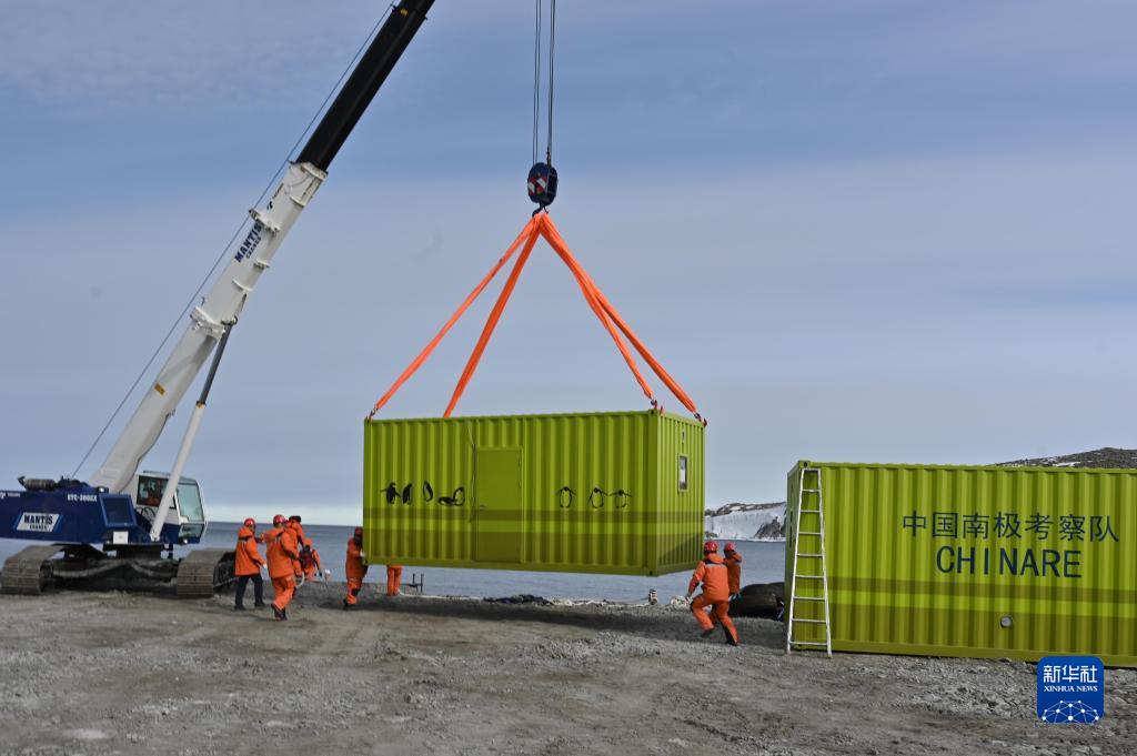 12月7日,中國第40次南極考察隊開展卸貨作業。