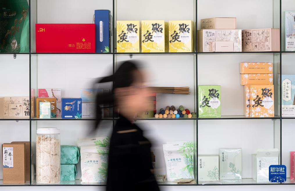 這是在蘄春縣高新鋪村的就業幫扶車間拍攝的蘄艾相關產品(12月7日攝)。