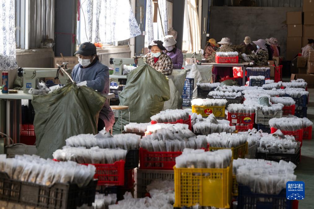12月7日,在蘄春縣高新鋪村的就業幫扶車間,工人在加工蘄艾產品。