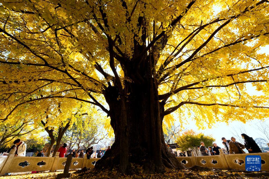 12月7日,上海嘉定古樹公園的千年銀杏吸引眾多游人前來賞葉。