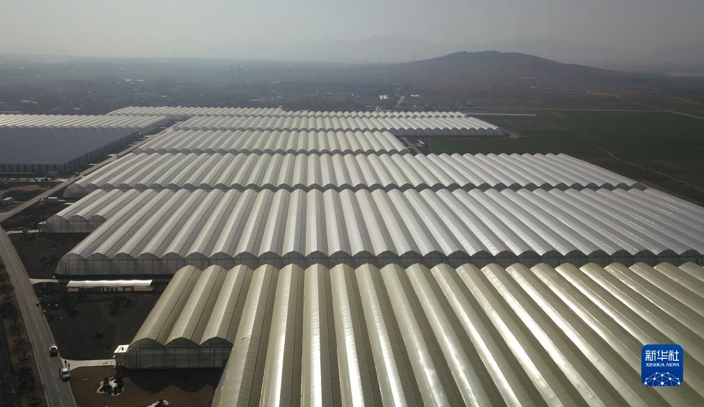 12月7日拍攝的位于山東省新泰市樓德鎮的玫瑰種植大棚(無人機照片)。