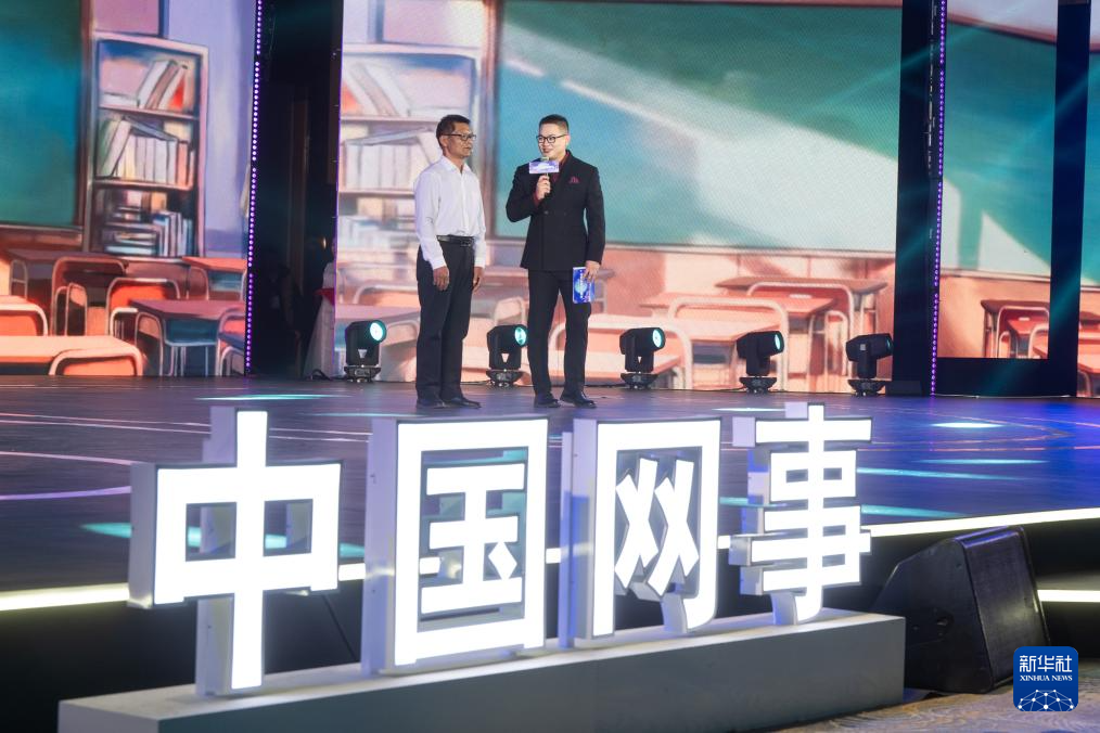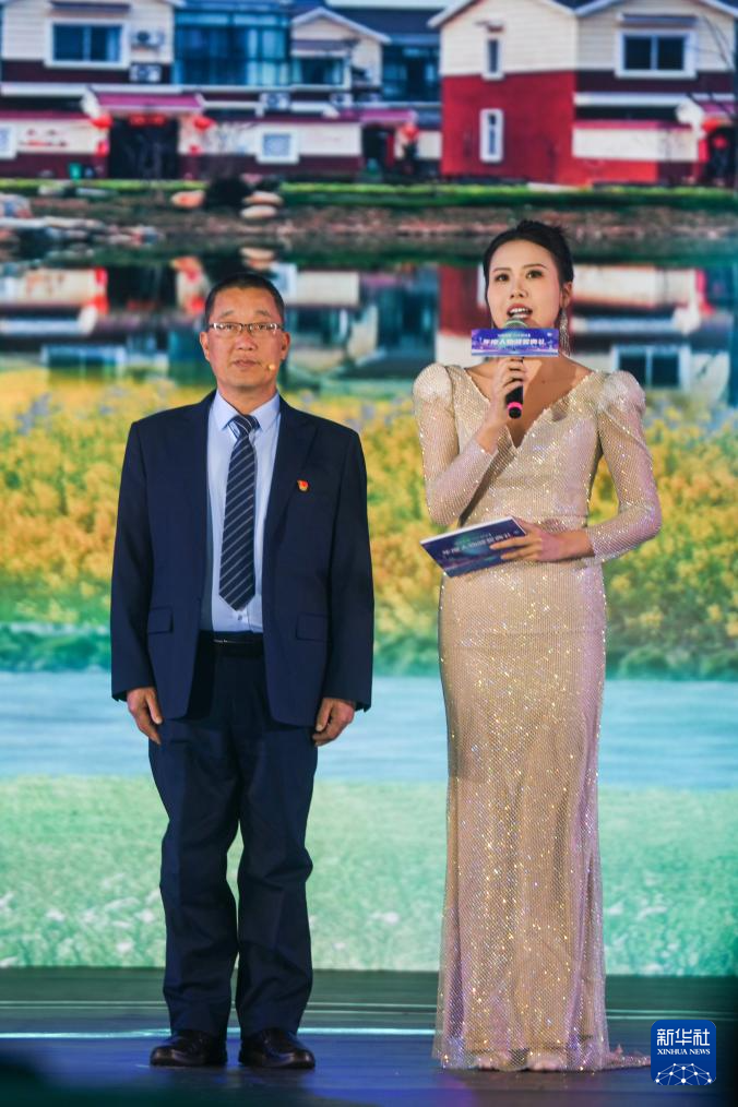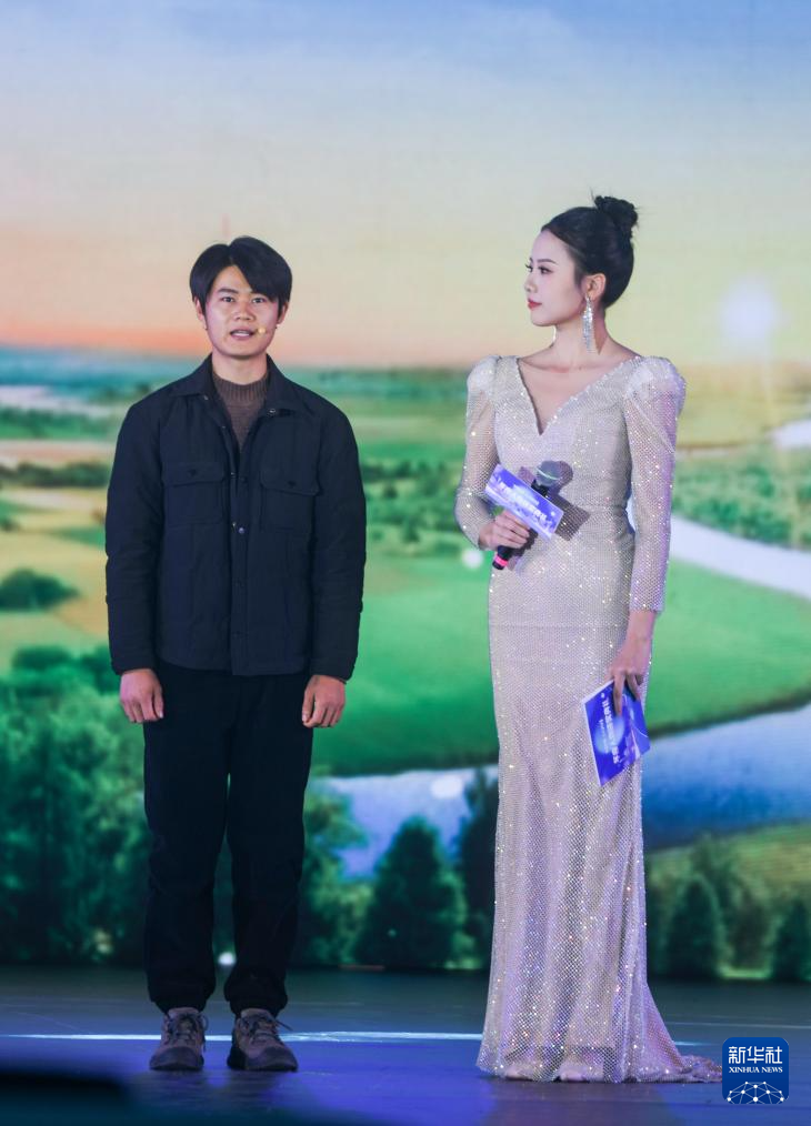 1月4日,由新華社主辦的“中國網事·感動2023”年度人物頒獎典禮在武漢舉行。這是“用短視頻助力鄉村振興”的莫宙(左)出席頒獎典禮。
