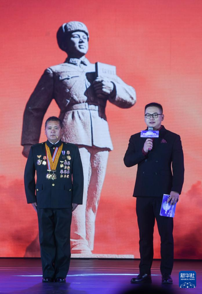 1月4日,由新華社主辦的“中國網事·感動2023”年度人物頒獎典禮在武漢舉行。這是傳承紅色基因的“故事爺爺”王忠祥(左)出席頒獎典禮。