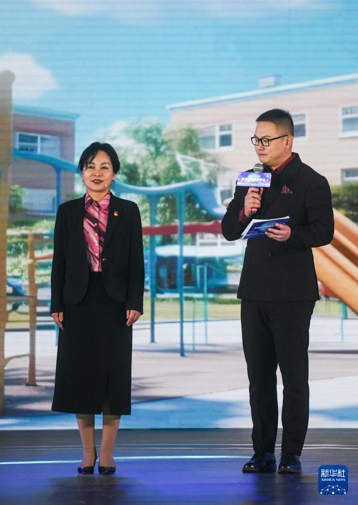 1月4日,由新華社主辦的“中國網事·感動2023”年度人物頒獎典禮在武漢舉行。這是“80多個孩子的媽媽”朱培娟(左)出席頒獎典禮。