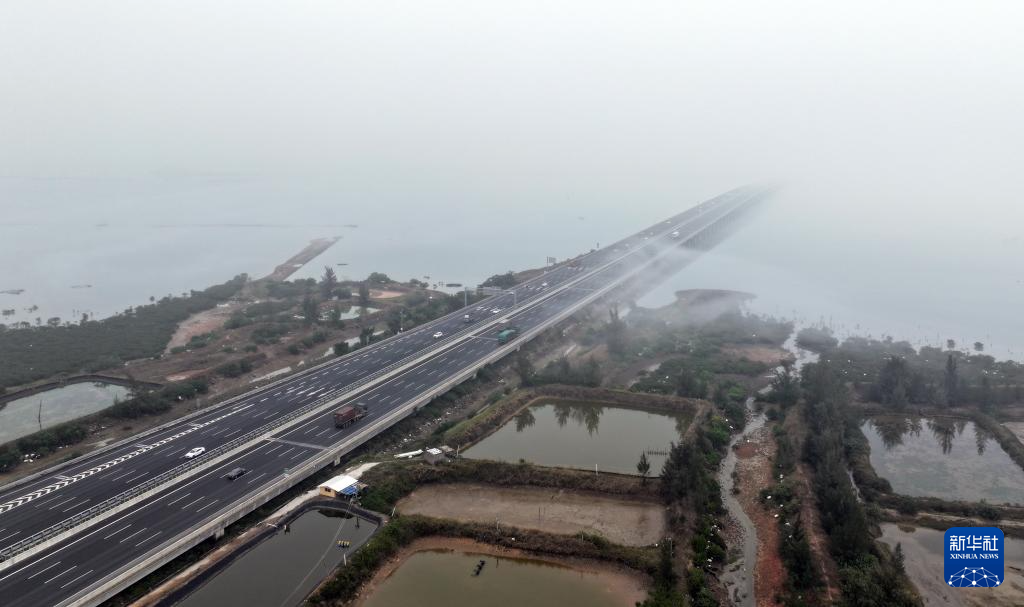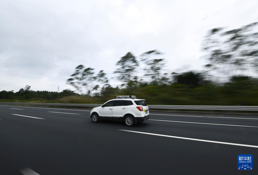 2024年2月2日,周克兵駕車行駛在廣西北海市境內的高速公路上(無人機照片)。
