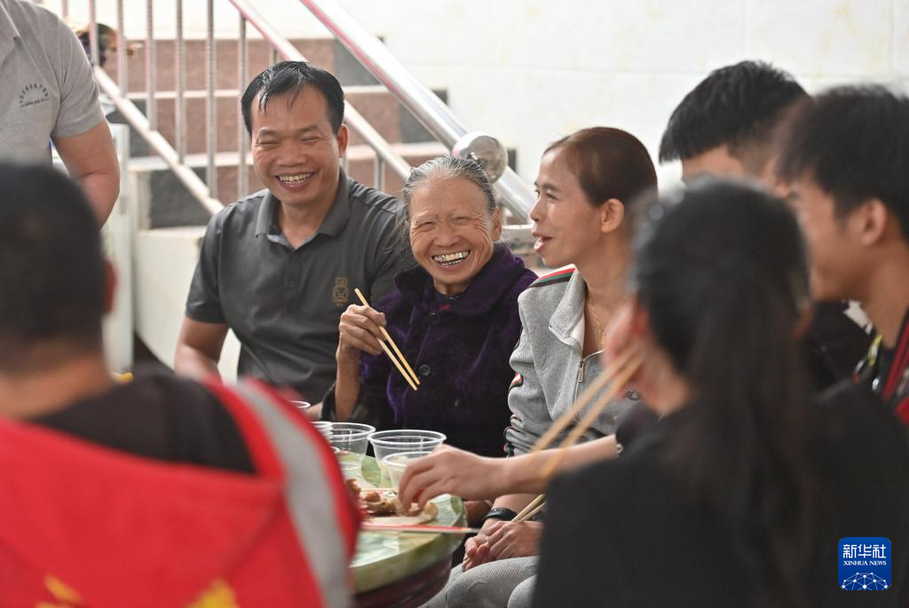 2024年2月3日,在廣西靖西市祿峒鎮思侯村,周克兵和家人一起吃午飯。