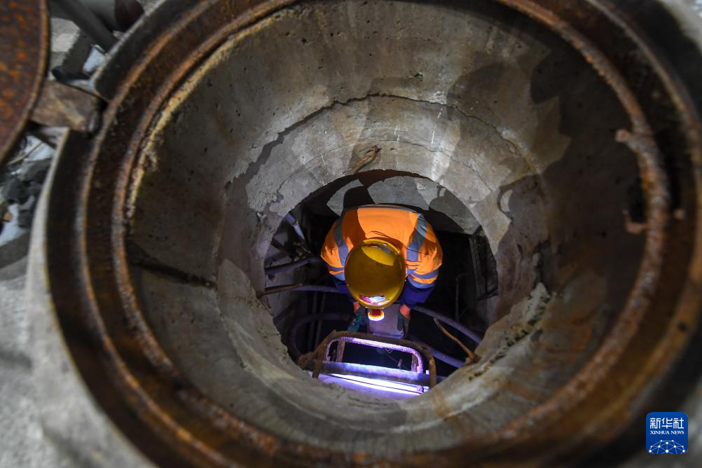 2月6日凌晨,龐偉強在長春站的井下檢修完智能客車上水栓電動閥門后爬出井口。